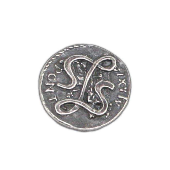 Lasciel's coin is solid sterling silver and measures 19.2 mm long, 19.2 mm wide and 2.6 mm at the thickest point. The denarii coin is three dimensional and weighs 5.1 grams. The side of the coin is stamped with makers mark, copyright, and metal content - sterling.
