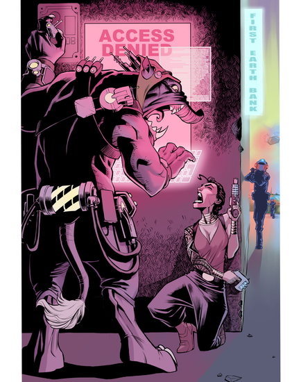 We're thrilled to share this impressive sci-fi print created by Worldbuilders favorite Nate Taylor. Featured on his website, it depicts a heist gone wrong in the distant future.