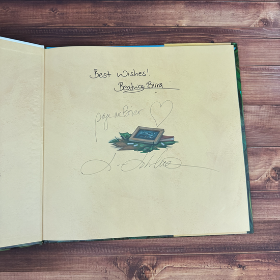 The author, Page McBrier, the illustrator, Lori Lohstoeter, and Beatrice, the subject of the book, have all graced the signed books with their autographs. You're not going to be able to find a copy of this book signed like this anywhere else. We were lucky to catch Beatrice and have these books signed by her while she was visiting Heifer International’s headquarters, which is something that she doesn’t get to do often.
