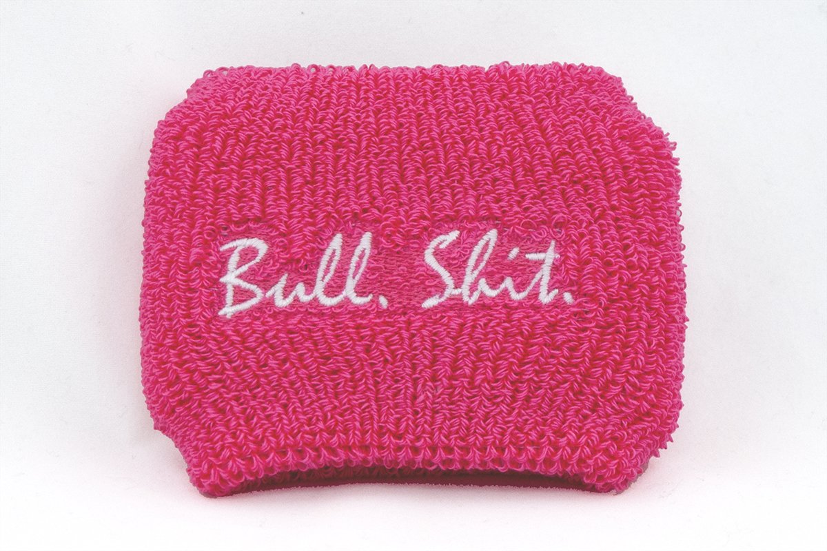 Sweaty wrists? This hot pink wristband says YOU'RE WELCOME! Actually it says "Bull. Shit." but you know what we mean. This 3", 3-Ply, ultimate wristband soaks up all the sweat.
