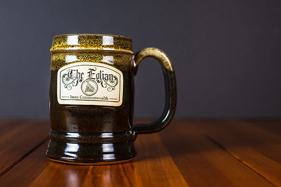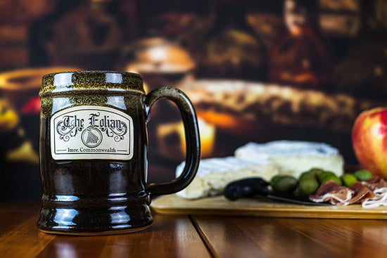 These stoneware coffee mugs feature the Eolian Bar logo and look like something you might find a certain red-haired musician drinking from.