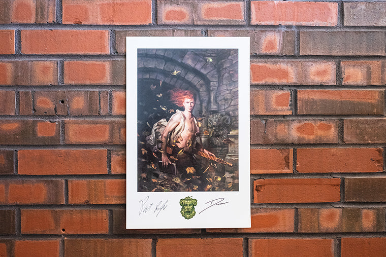 This print is the original cover art by Donato Giancola for The Name of the Wind by Patrick Rothfuss.