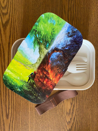 Slowly regarding silent snacks is fine, but what if you want your Rothfuss-themed bento-style box for lunches? We’ve got you covered with "The Name of the Lunch Bento Box". Artistry by Artem Demura.