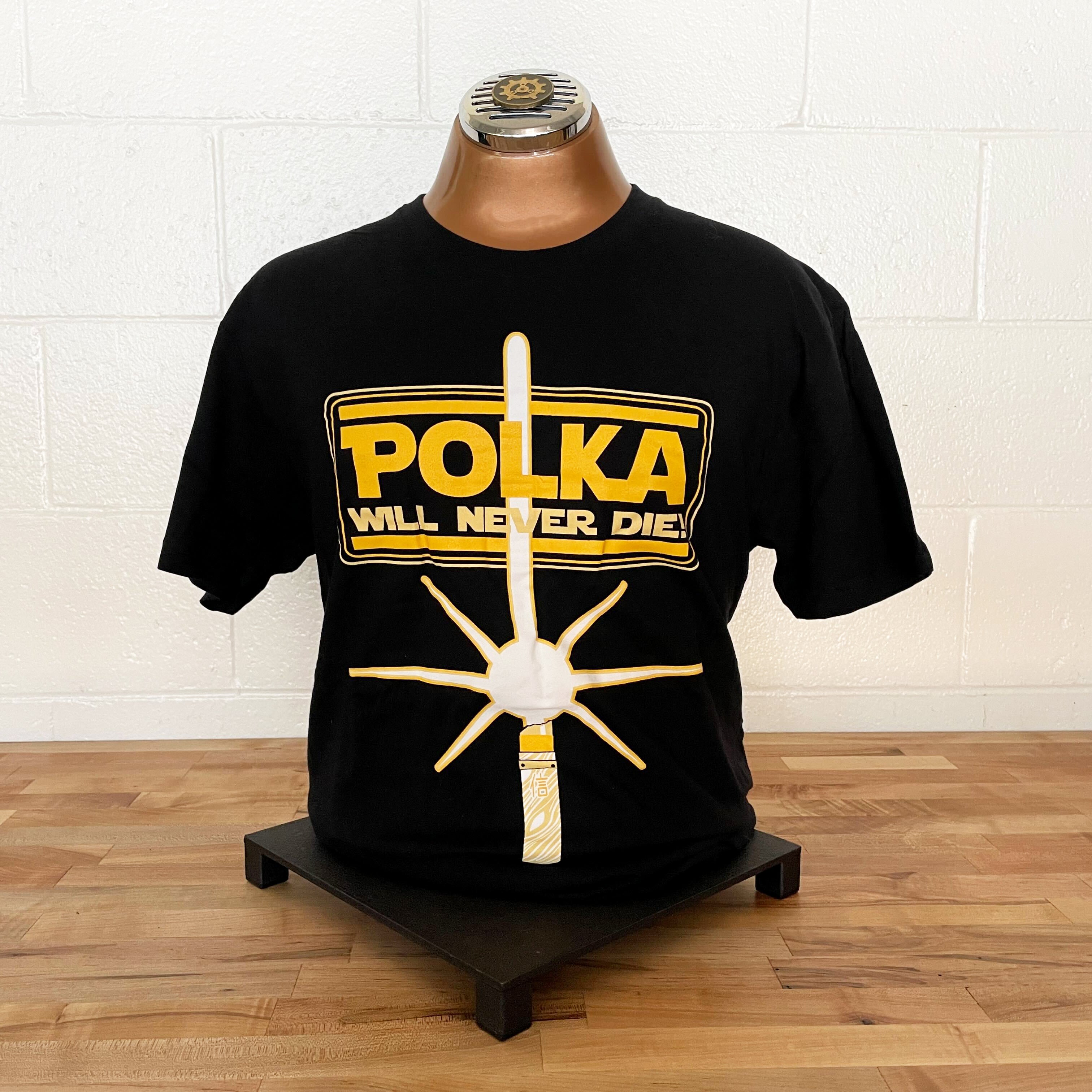 Get this t-shirt that captures the iconic moment from Skin Game (book 15 of the Dresden Files by Jim Butcher), where Waldo Butters grabs the broken hilt of his not-a-lightsaber sword Fidelacchius and a new blade of light springs forth.