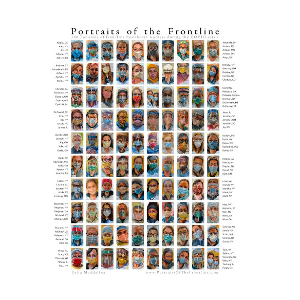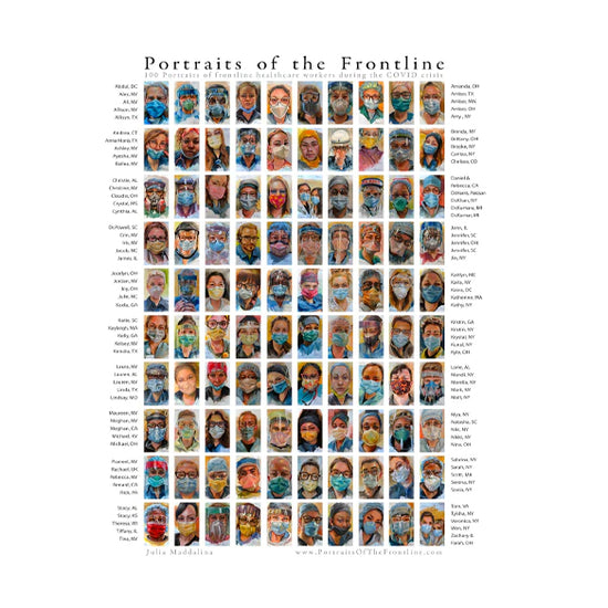 This wonderful art was created by Julia Maddelina as an oil painting of our fearless frontline workers. As a means of support, they sent in their images to Julia, who then created oil paintings of them, and arranged them into a collage. You can view more of her work in our Julia Maddalina collection!