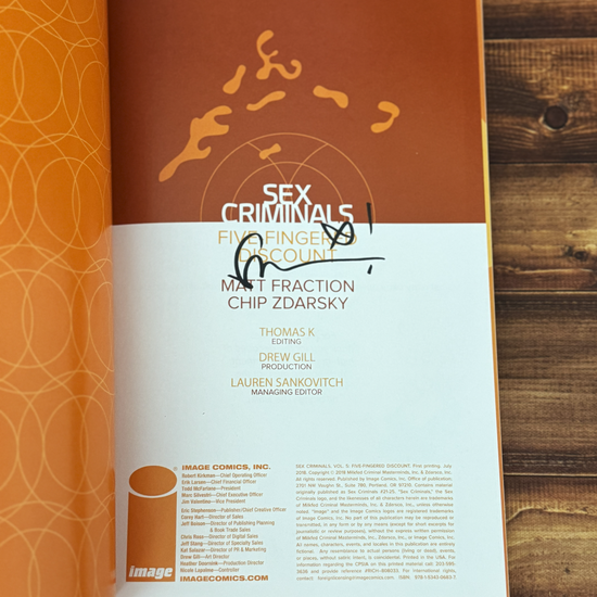 Sex Criminals Volume Five: Five Fingered Discount signed by Matt Fraction.