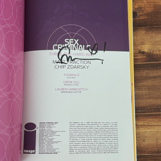 Sex Criminals Volume Three: Three the Hard Way signed by Matt Fraction.