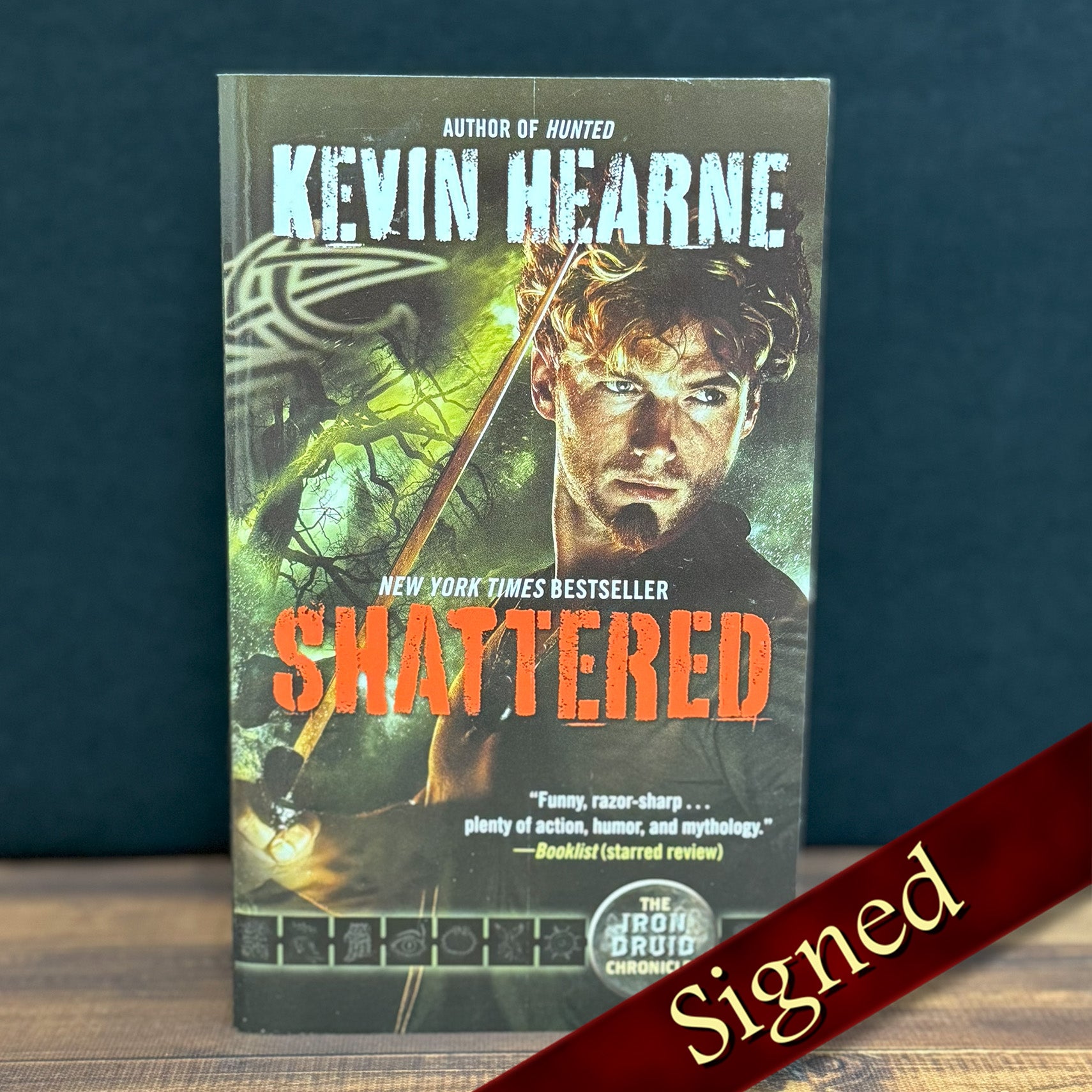 Shattered is available here in mass market paperback, signed by author, Kevin Hearne.