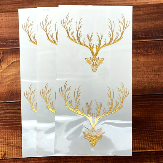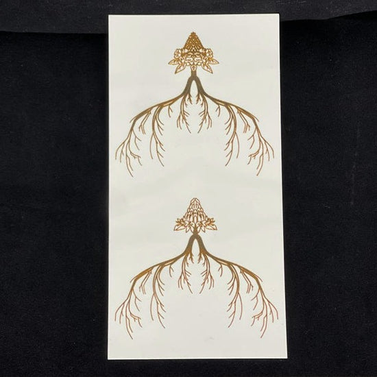 Each temporary tattoo comes embossed with gold foil and measures 3" across. Two tattoos per individual set, or available in a pack of 3 sets.