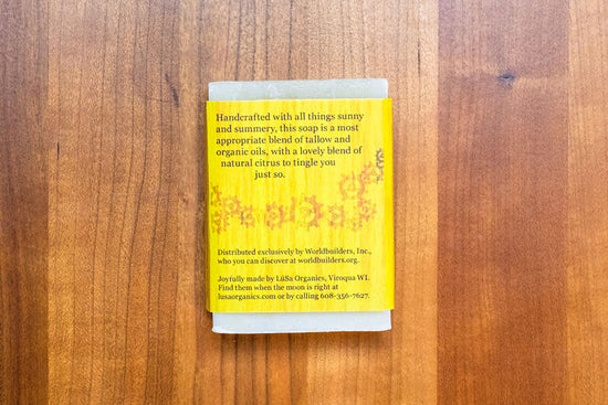 Sunnier and more summery than ever! We are loving this soap's fresh warm citrus scent. Each one handcrafted with an emphasis on organic ingredients by local body care company LüSa Organics in Viroqua, WI