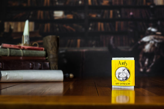Each handcrafted bar of soap has a net weight of 4oz, and contains the following ingredients: Saponified tallow, saponified oils of coconut*, olive*, and sunflower*; fair trade shea butter*, and essential oil blend (tangerine, sweet orange, clementine, bergamot, lime, spikenard, and patchouli)