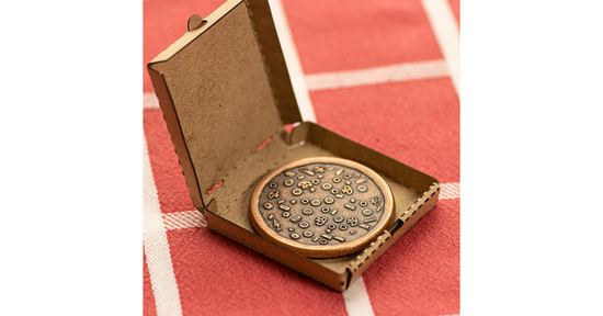How awesome is Shire Post Mint? Awesome enough to strike a collectible PIZZA COIN!!! This coin weighs in at 32g, is 1.58" (40mm) around, and takes 90 tons to mint. That's the same weight as 180,000 16oz bags of cheese! Please note: this pizza is not edible and doesn't taste as good as the real thing.