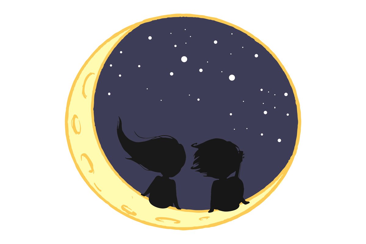 Dress your own little moon fae in this lovely outfit featuring Kvothe and Auri as they admire twin stars in the sky. Art by Arandanity.