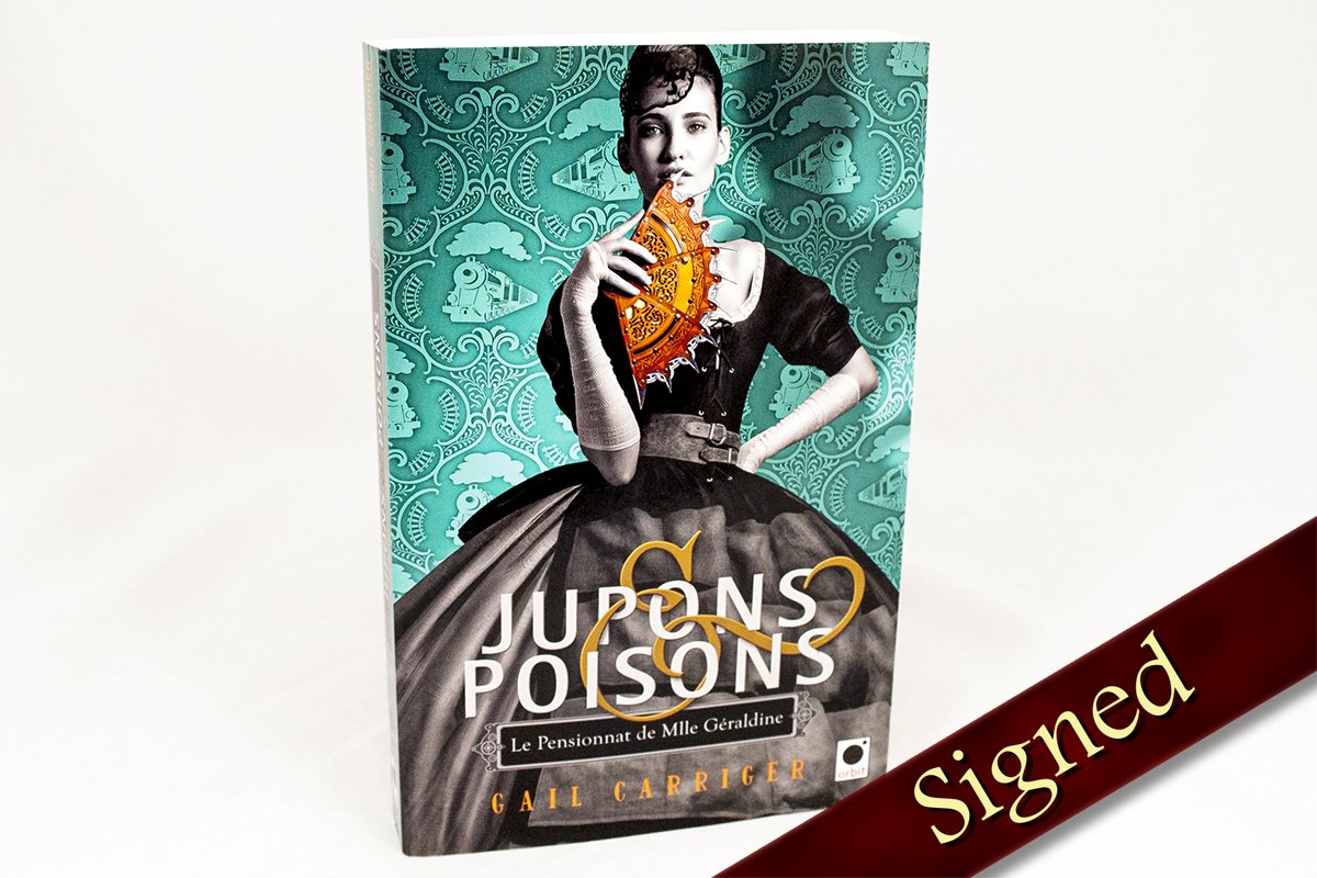 It is available here in mass market paperback, signed by its author, Gail Carriger.